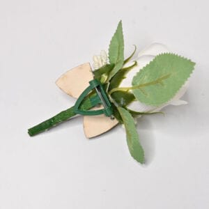 Design Unic: Cocardă elegantă creată special pentru mire, decorată cu trandafiri albi din spumă și material textil.