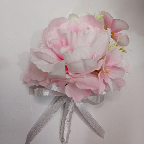 Cocardă Nuntă Bujor Roz și Flori Mixte